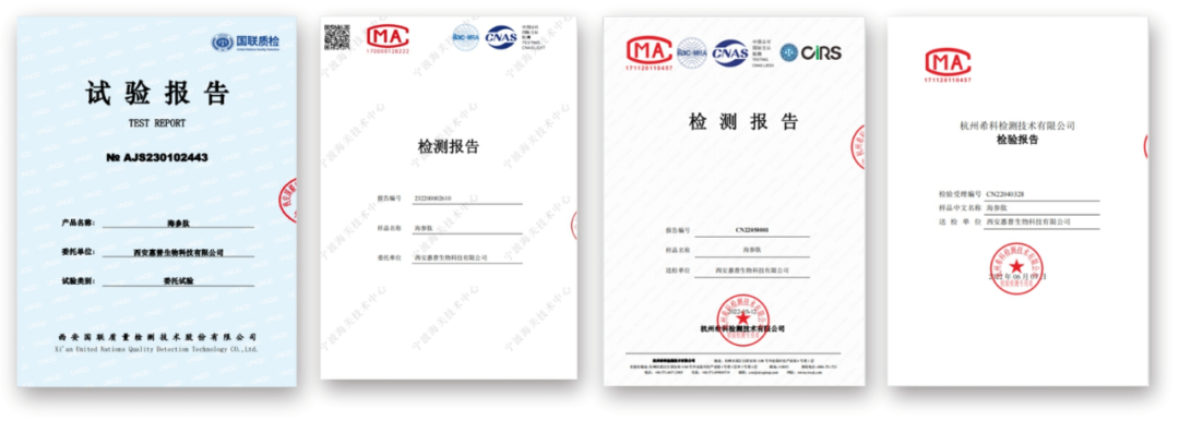 在原料安全性方面,通過人體斑貼、急性眼刺激、多次皮膚刺激性、皮膚變態(tài)反應試驗和微生物、重金屬檢驗,證明海參肽安全、溫和、無刺激,用于人體皮膚的安全性較高。